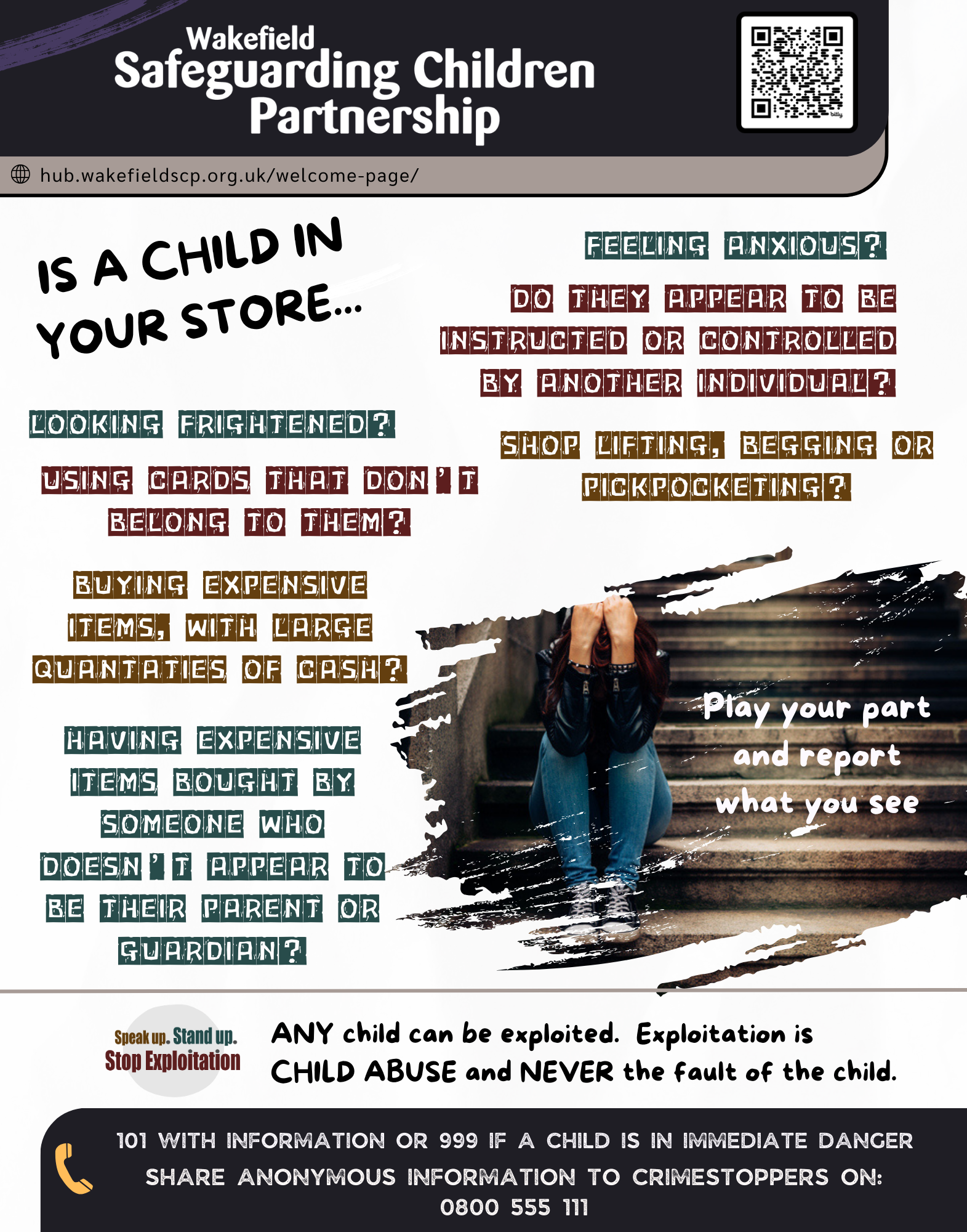 For more information visit www.wakefieldscp.org.uk or call 03458 503 503 with a concern